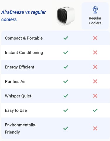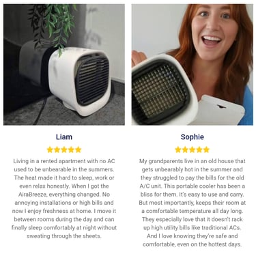AiraBreeze is a revolutionary air-cooling solution that fits all homes and needs. Enjoy installation-free, portable, electric, and energy-efficient air conditioning to combat the heat. Individual results may vary due to a variety of factors and are not ensured.